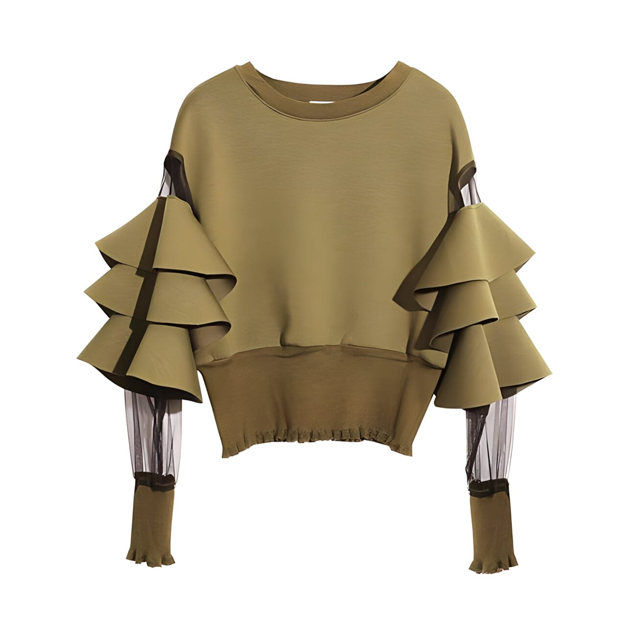Ruffled Long Sleeve Blouse - Hunter Green